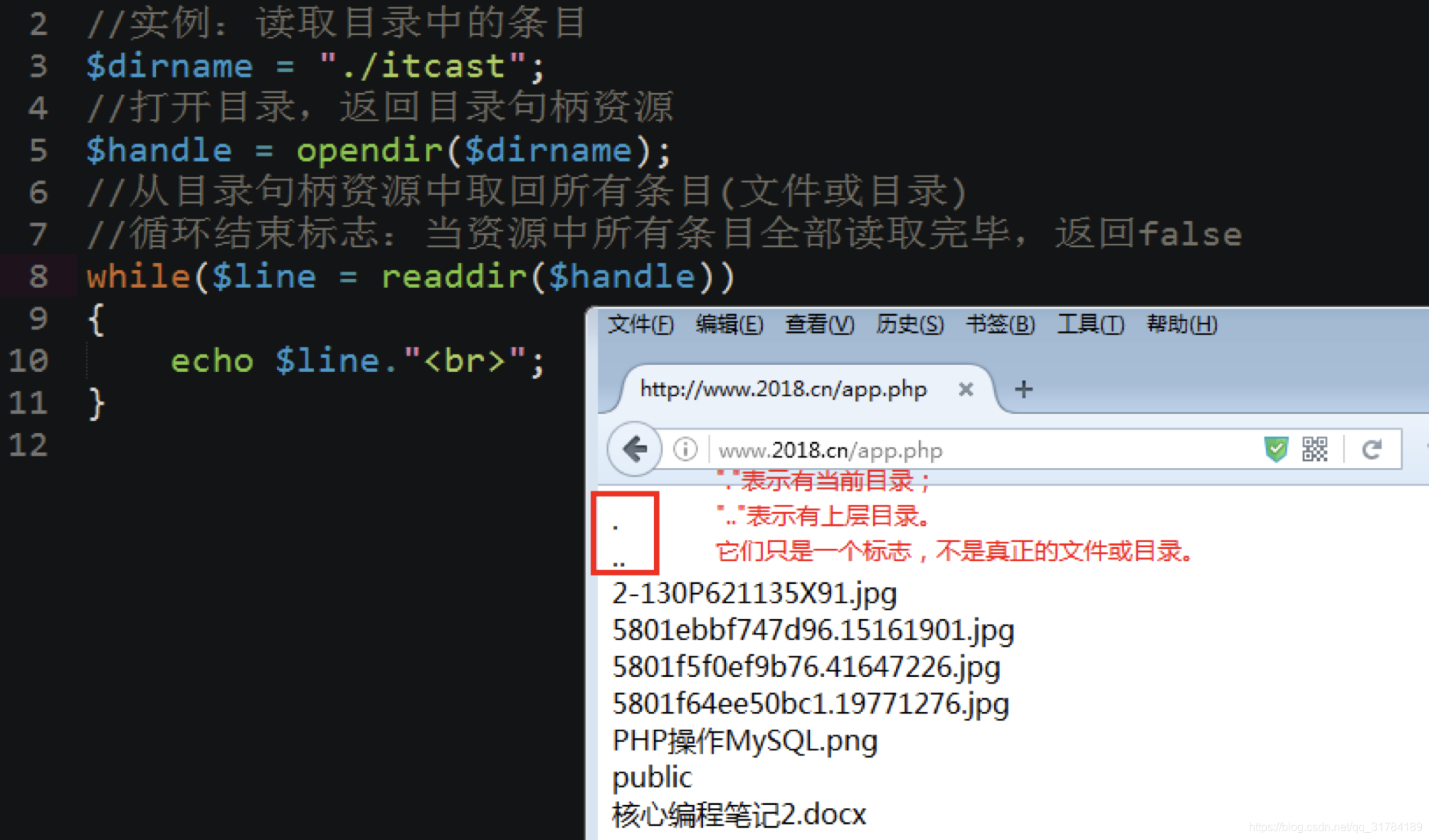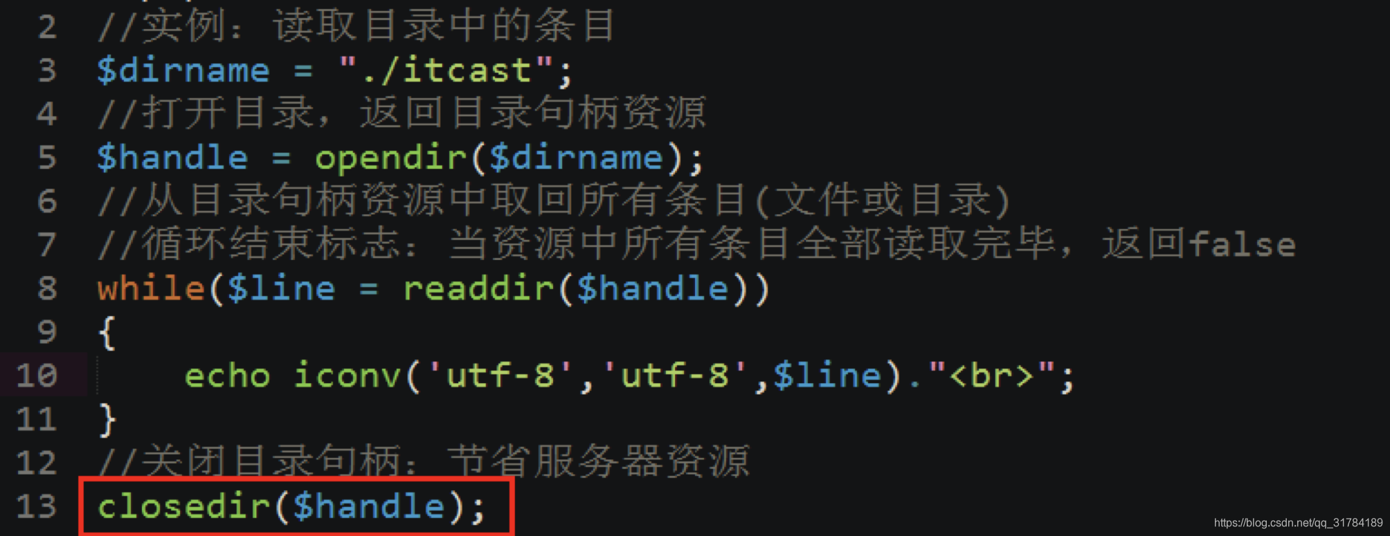 - 提示:如果省略$dir_handle,则默认为最后由opendir()打开的目录句柄。