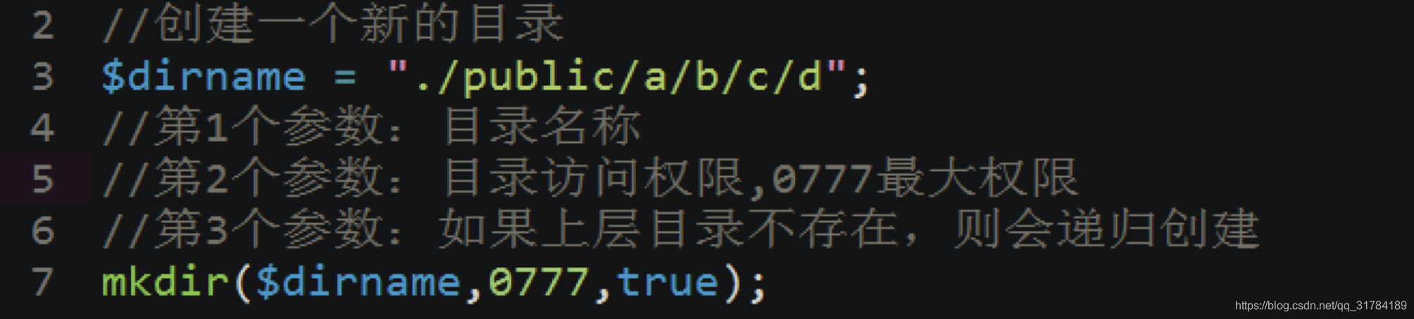 - 语法:bool mkdir ( string $pathname [, int $mode = 0777 [, bool $recursive = false ]] )