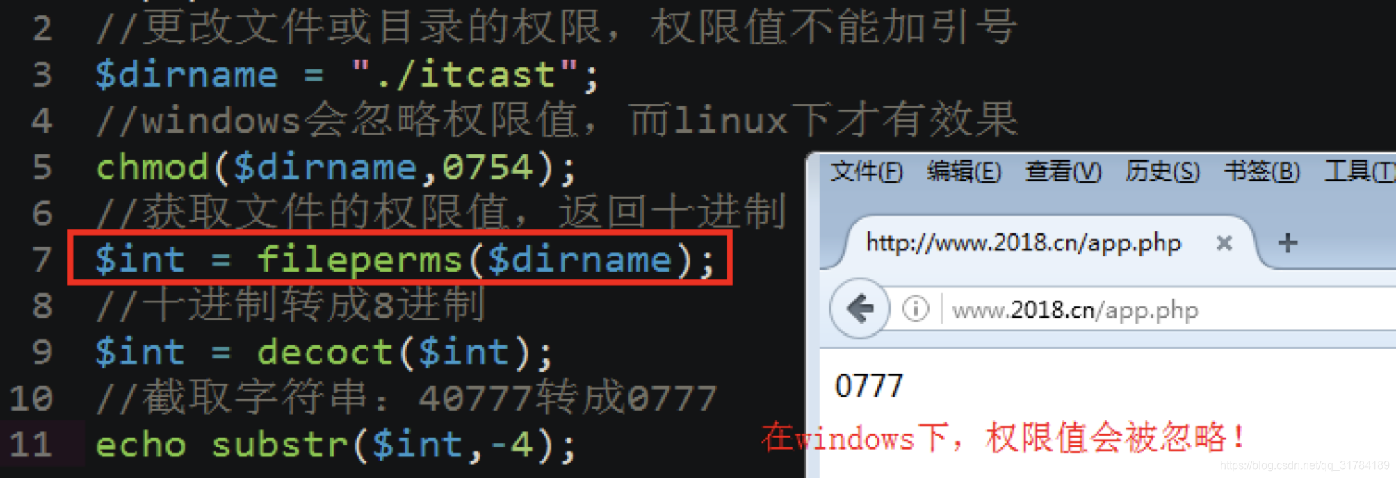 - 提示:在window下文件的只读权限是 0444。文件夹只读权限0555。