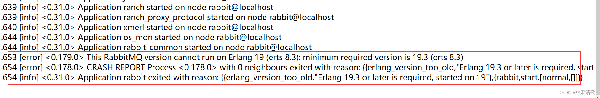 有问题,注意看日志, 在/rabbitmq_server-3.7.5/var/log/rabbitmq下, 提示的很明显了,就是erlang版本不匹配,当然肯定有其它原因也会报这个错,重点是会自己看日志!