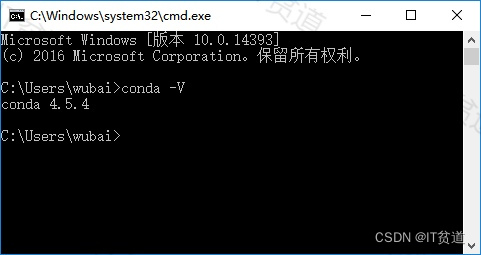 配置完成之后,打开CMD命令窗口输入:conda,验证是否安装成功:
