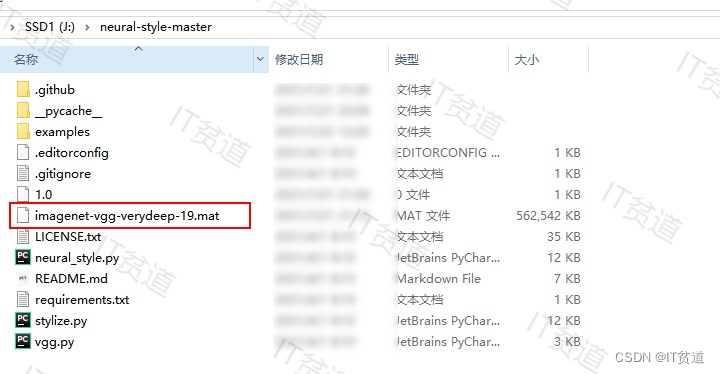 从http://www.vlfeat.org/matconvnet/models/beta16/imagenet-vgg-verydeep-19.mat网站下载VGG 训练好的模型,将下载好的“imagenet-vgg-verydeep-19.mat”文件放在项目“neural-style-master”目录中