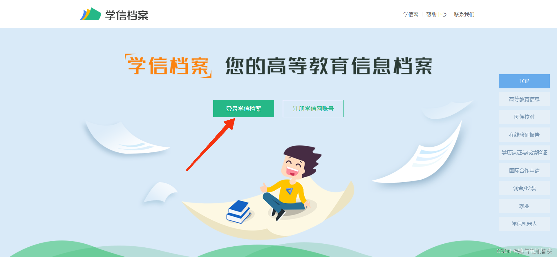 点击“进入学信档案”(没有登录的同学可能会需要先登录才能进入)