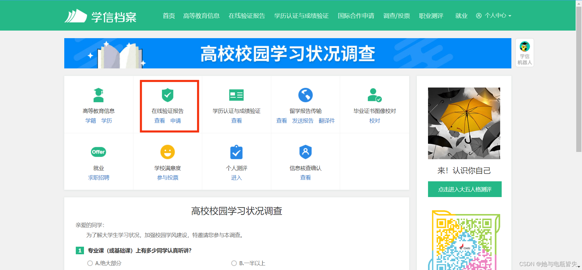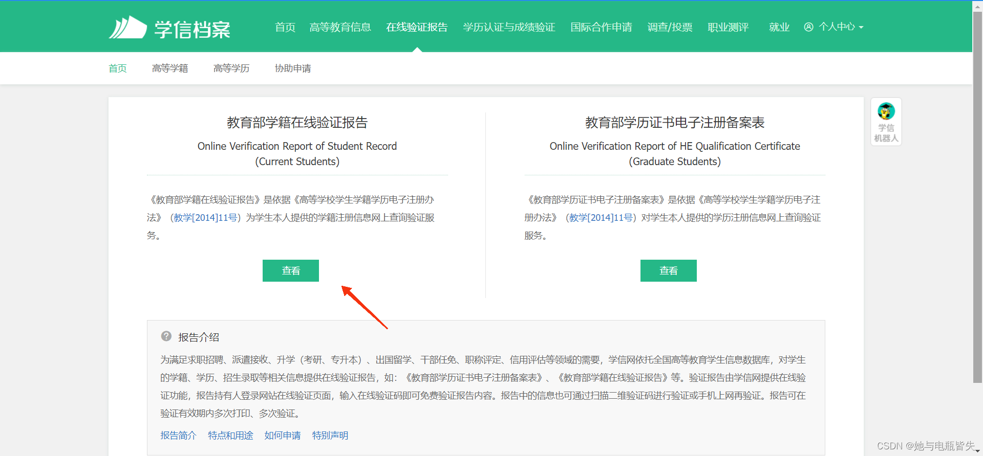 点击“教育部学籍在线验证报告”下的“查看”选项