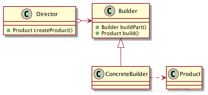 - ConcreteBuilder:具体的建造器,完成产品的组装实现。
