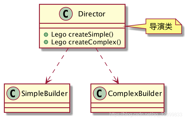 为了避免高层模块深入到构建者内部的实现类,因此创建一个导演类,由导演类来复杂调用构建器生成套件实例。