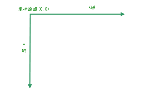 窗口坐标系统: 窗口坐标系统与直角坐标系统都含有x轴,y轴,两轴的交点为坐标原点(0,0),原点沿x轴向右方向为正值,不同的是原点沿y轴方向向下为正值。