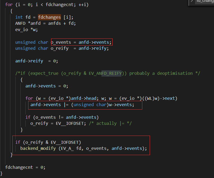 changfds:是int*类型数组,每个元素记录当前发生更改的fd,比如加入新的监听fd,或者fd的监听事件发送修改。