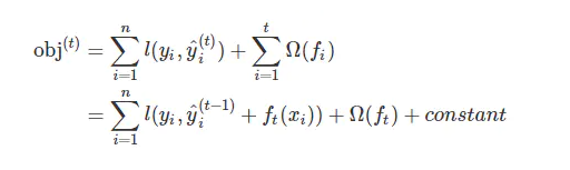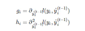 这里需要声明一些gi和hi的含义。gi和hi是我们的损失函数关于y i ^ ( t − 1 ) 的一阶导数和二阶导数,只要损失函数确定那么gi和hi也就确定了。具体举例参考:xgboost的原理没你想像的那么难 - 简书 (jianshu.com)