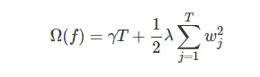 其中T代表一颗树中叶子节点的个数,w是一个T维向量,由T个叶子节点的值组成。q(x)是一个映射,用来将样本映射成1到T的某个值,也就是把它分到某个叶子节点,q(x)其实就代表了CART树的结构。w_q(x)自然就是这棵树对样本x的预测值了。