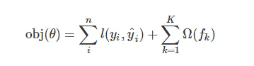 这里的K就是树的棵数,F表示所有可能的CART树,f表示一棵具体的CART树。这个模型由K棵CART树组成。