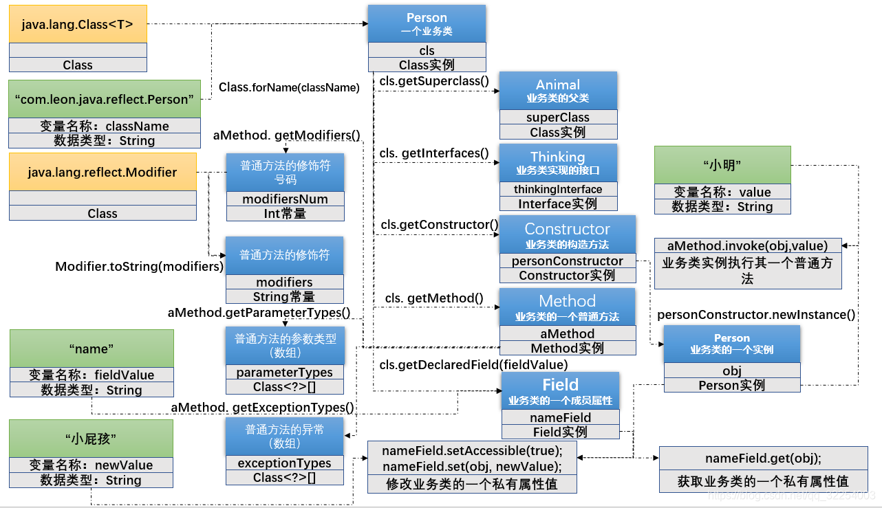 - 获得该实例对象的本类及父类的指定或全部信息