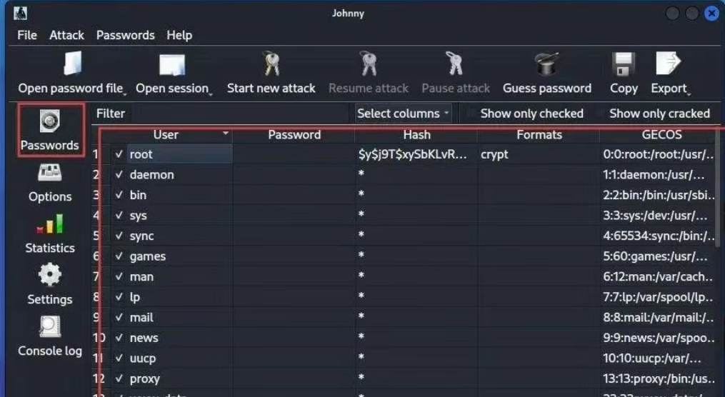 Johnny,是john的升级版,一款拥有图形界面的哈希值密码破译工具。