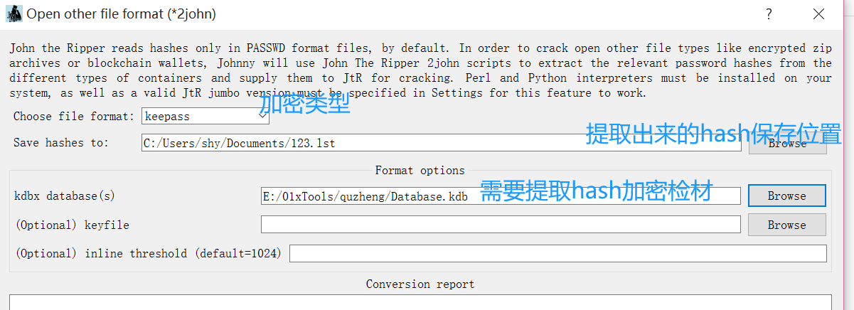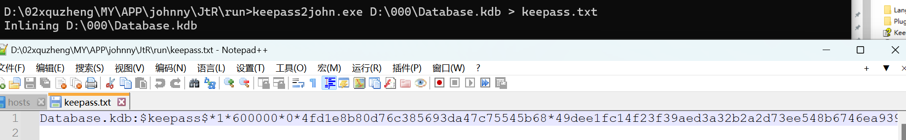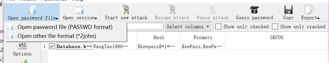 4、或者直接加载加密数据进行破解,johnny或自动调用keepass2john.exe提取出加密hash然后进行爆破