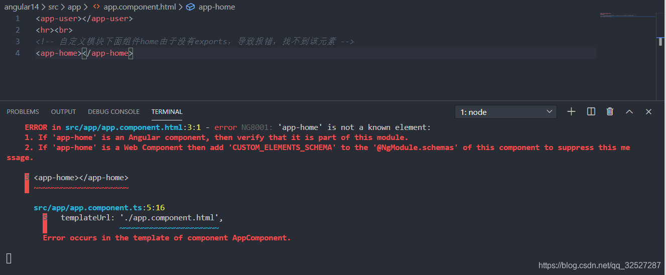 // 和上面的核心模块样,使用自定义模块需要先import,同时放入@NgModule()中
