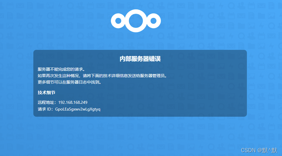 Nextcloud 内部服务器错误解决 在部署nextcloud过程中最后登录页面时出现内部服务器错误,心态当时就炸了。在网上找了各种方案,但是大部分博主都告诉我是/var/lib/php/session/属组的权限问题,或者web目录的权限不对。但是对我这个问题没有用。我把他们的方案贴出来对你们或许有用。我用的是Nginx但是我依旧没有解决问题,最后我想起来了找到他的日志看看最后发现一句话对我有用。Memory allocation error: 1038 Out of sort memory, consid..