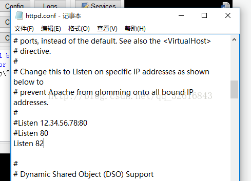 [修改端口]httpd.conf中改为Listen 82(XAMPP安装时)