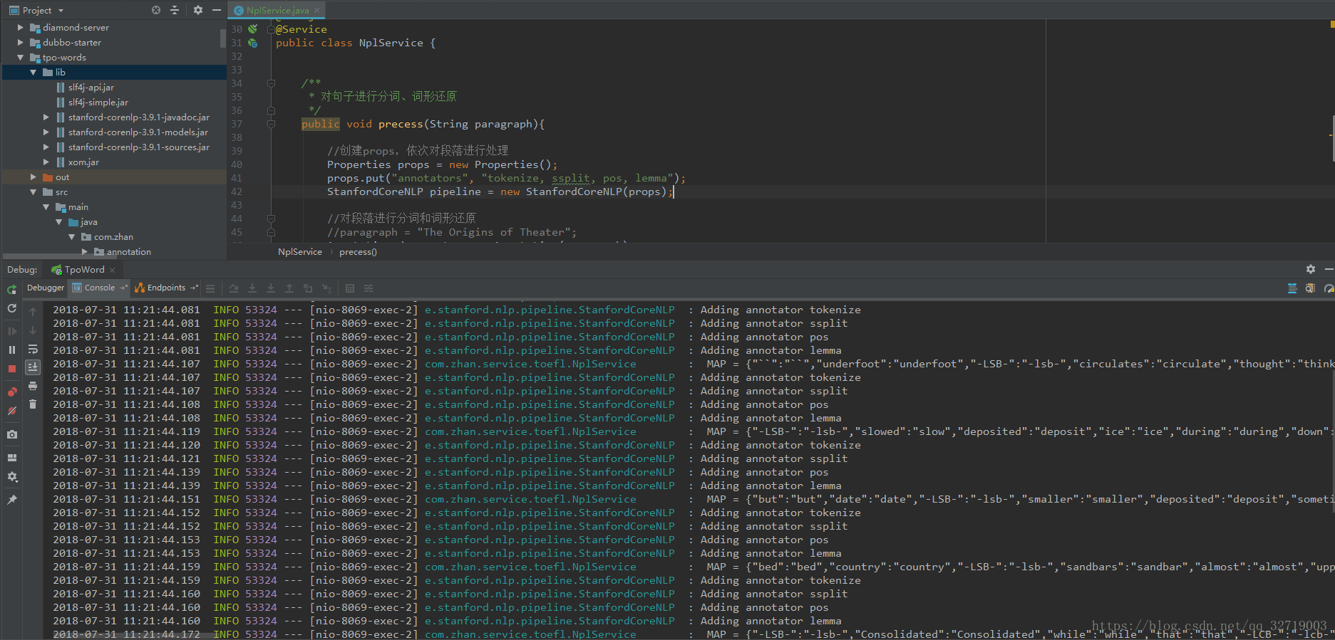 props.put("annotators", "tokenize, ssplit, pos, lemma");