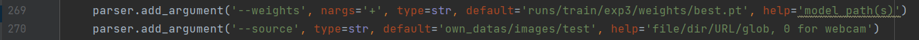 parser.add_argument('--weights', nargs='+', type=str, default='runs/train/exp3/weights/best.pt', help='model path(s)')