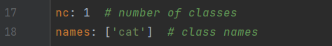 在yolov5-master\data路径下找到coco128.yaml文件,复制到yolov5-master\own_datas路径下,改名为cat.yaml