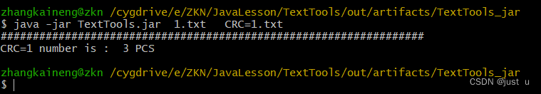 Java正则简单运用1 从 第1个文件读取txt内容,从第2个文件读取正则表达式,统计正则表达式在文件1中出现的次数。例如: java -jar TextTools.jar 1.txt CRC=1.txt。统计 CRC=1.txt中正则在 1.txt 中出现的次数,注意:文件和jar 包都放在同一目录下。