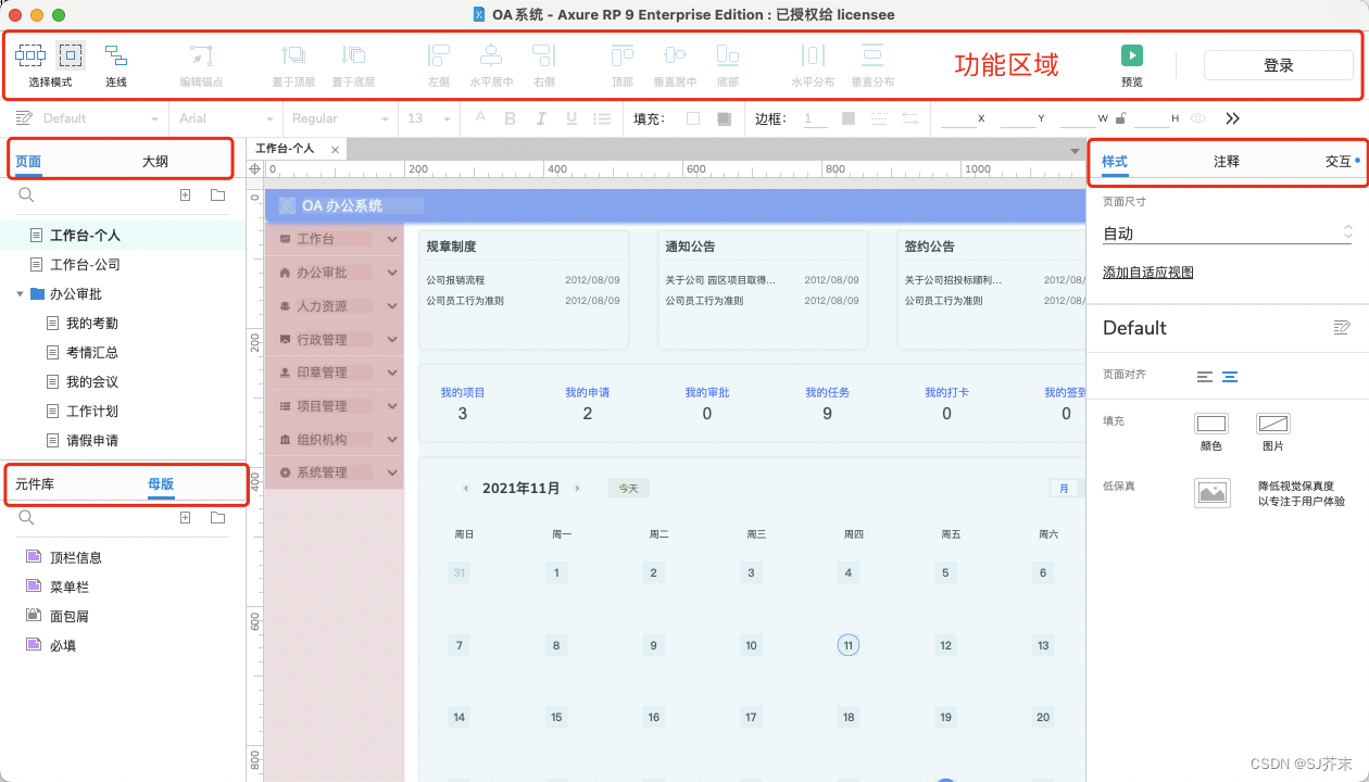 【注:此区域基本上常规的软件都涉及,并且在Axure 8 版本与Axure 9 版本区别不是很大,此处就不做过多详细说明,具体看本章节中的子章节进行说明】。