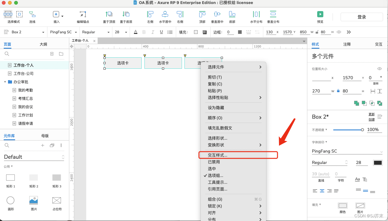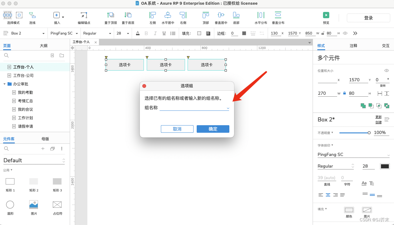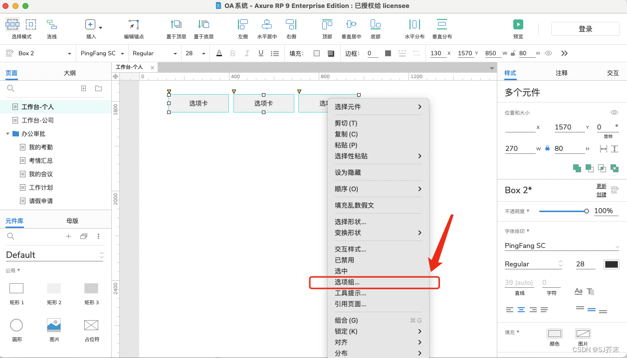 第二种:框选元件,在右侧交互面板中,设置选项组