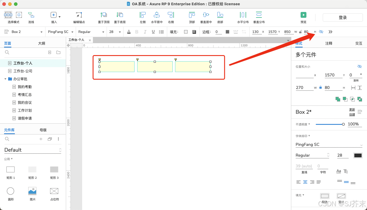 元件的隐藏/显示设置,可以将元件设置为不可见/可见,在预览状态下隐藏的元件是看不见的,只有在显示状态才能看见,元件默认都是显示的
