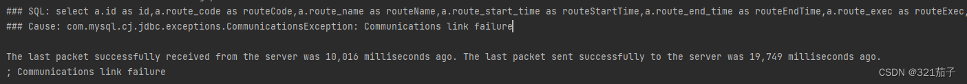 mysql查询异常之Communications link failure 1.查了一下网络是没有问题的,后来发现是这张表的数据量太大,又是连表查询,查询时间超过了配置的最大等待时间而报错,因此对查询语句进行了优化,满足在最大等待时间内。
