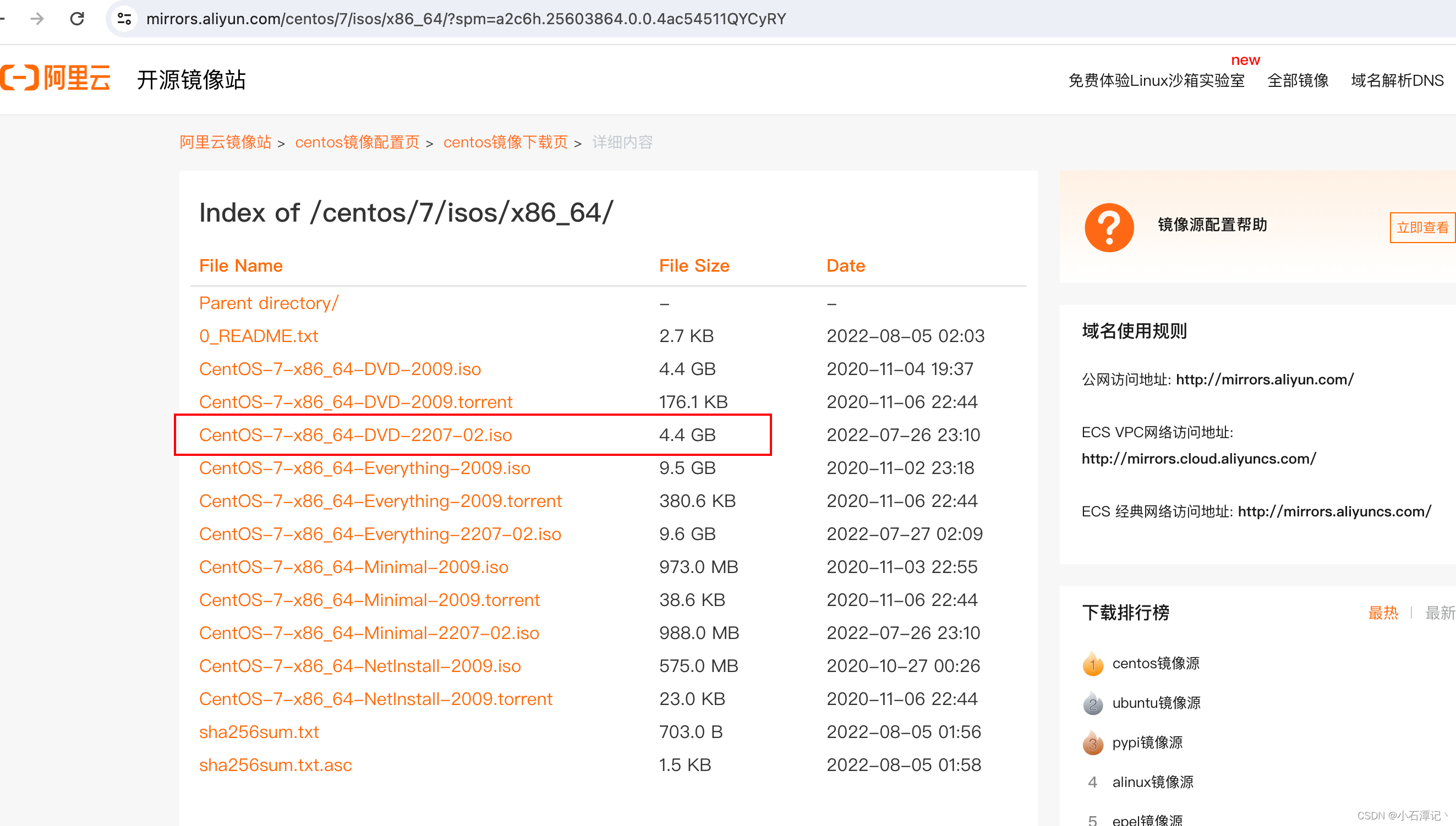 选择对应的版本即可,我下载的:CentOS-7-x86_64-DVD-2207-02.iso