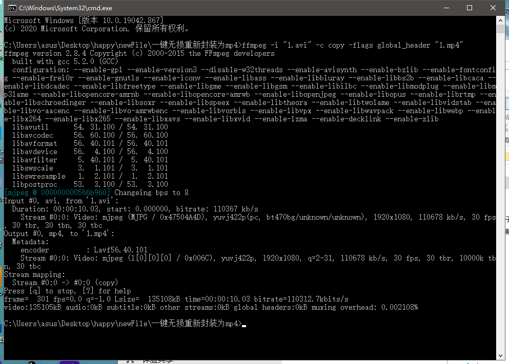 libs\ffmpeg.exe -i "%~1" -c copy -flags global_header "%~dpn1".mp4