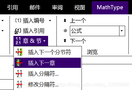 章节号是 在 菜单栏--MathType--章&&节 里通过 插入下一章、分节符来划分的,就是你得在每一章后选一下插入下一章,每一节后插入一个分节符(如果不要求节信息就不必)