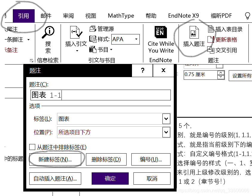 - 图片编号是通过题注实现的,菜单栏--引用--插入题注,新建标签(就是图片编号的固定前缀,比如说 我想让图片以图起头,或以图表起头)