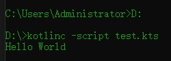 kotlinc -script test.kts //表示用配置的kotlin环境来执行本目录的脚本:test.kts