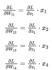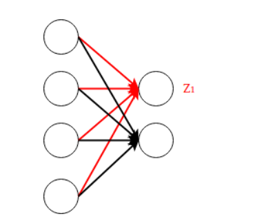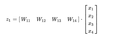 对于上面的网络结构, W 为 2×4 的矩阵,单个训练样本 x 为 4×1 的向量。