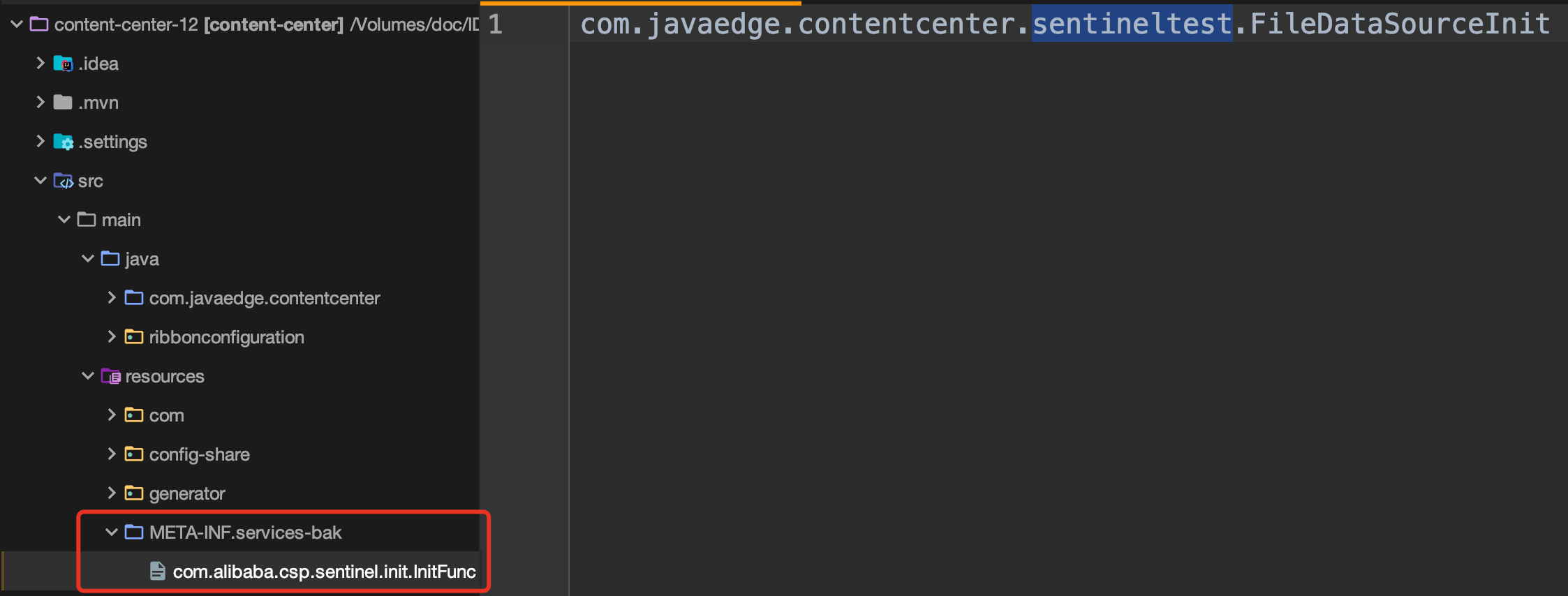 在项目的 resources/META-INF/services 目录下创建文件: