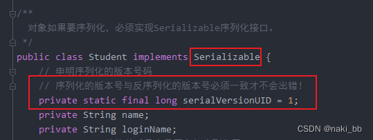 序列化的版本需要和反序列时一致,否则报错
