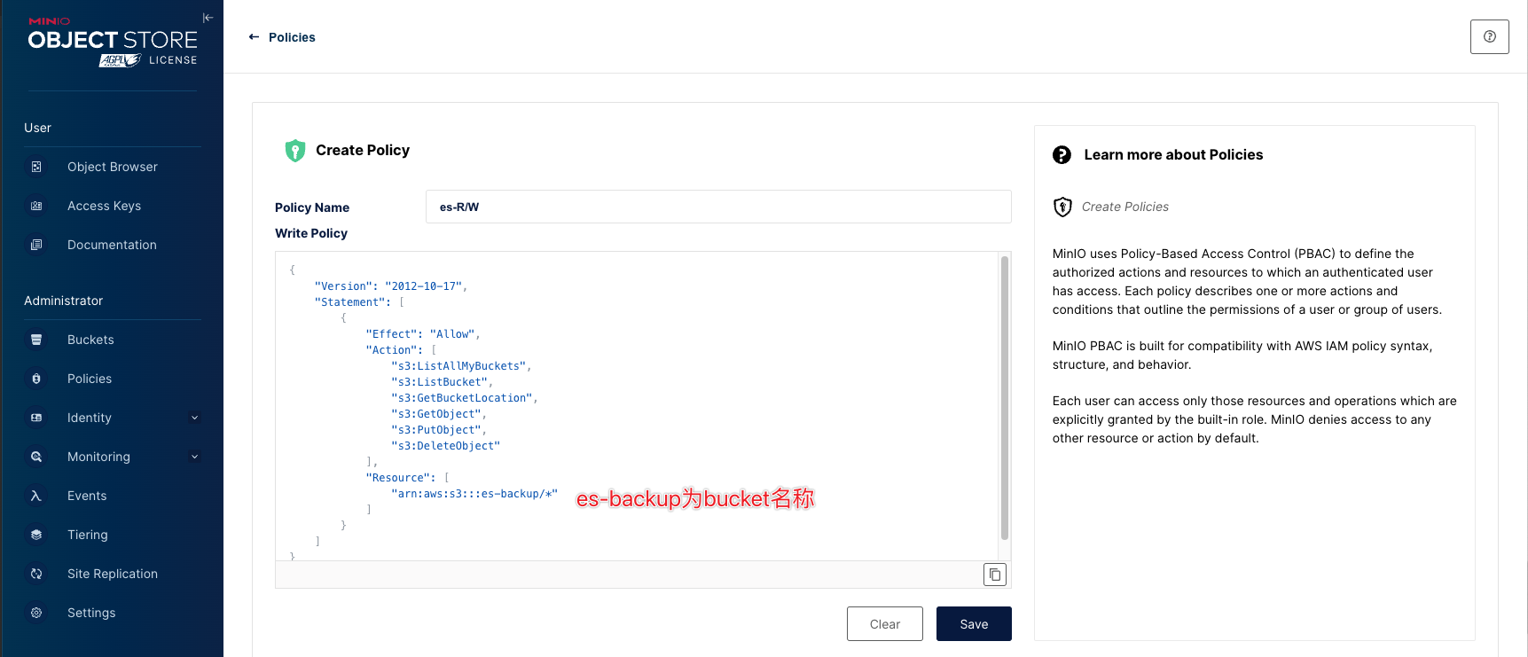 我们就创建了一个新的存储桶,并且给这个存储桶设置了一个用户,同时授权了用户对存储桶的访问,包括列表、上传、下载这几个基本权限。