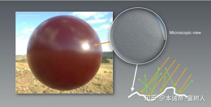 粗糙度贴图采样得来的粗糙度数值会影响一个表面的微平面统计学上的取向度。一个比较粗糙的表面会得到更宽阔更模糊的镜面反射(高光),而一个比较光滑的表面则会得到集中而清晰的镜面反射。
