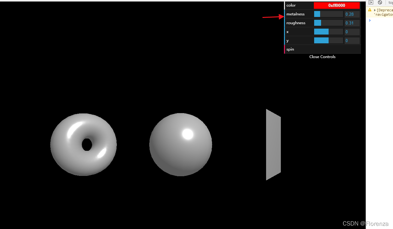 。金属性:浮动 这种材料有多像金属。木材或石头等非金属材料使用0.0,金属材料使用1.0,中间(通常)没有任何东西。默认值为0.0。介于0.0和1.0之间的值可用于生锈的金属外观。如果还提供了metalnessMap,则两个值相乘。