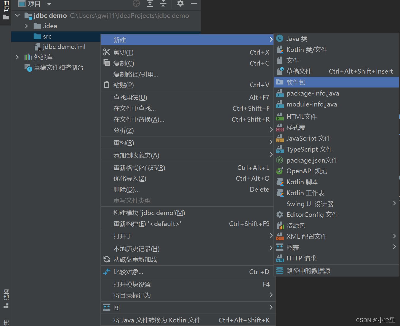 在src目录下右键->新建->创建一个包,随便取个名字