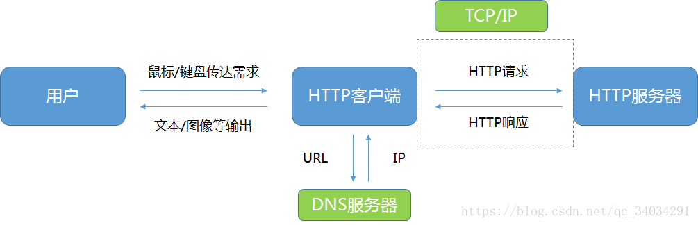 ②HTTP客户端收到需求后,将收到的URL信息向DNS服务器(域名系统)询问链接对应的具体IP地址,DNS服务器返回URL对应的IP地址。