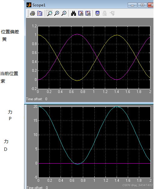 下图在matlab中仿真可见其是震荡的。就是不考虑摩擦,小于目标位置1m时,力都是向右的,达到目标位置,力为0,但是因为有速度存在,还是会过冲过去。因为0-1米过程中力产生的动能,需要在1-2米路程中被相反的力消耗掉。可以想象人荡秋千的情况,如果没有空气阻力,则一直会荡下去。