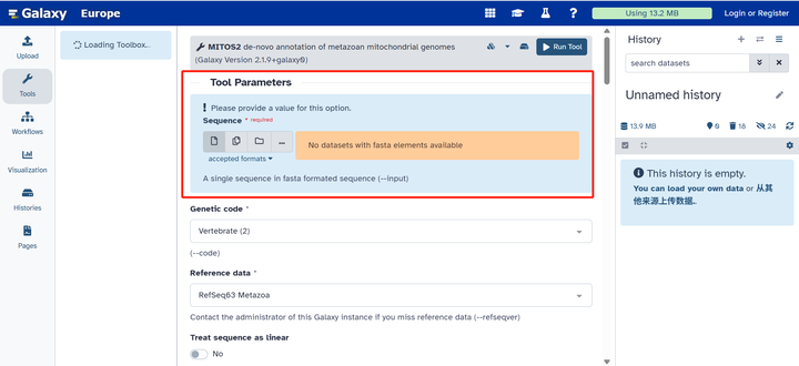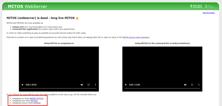 -  usegalaxy.eu hosts MITOS(1.0 版本,不推荐) MITOS2