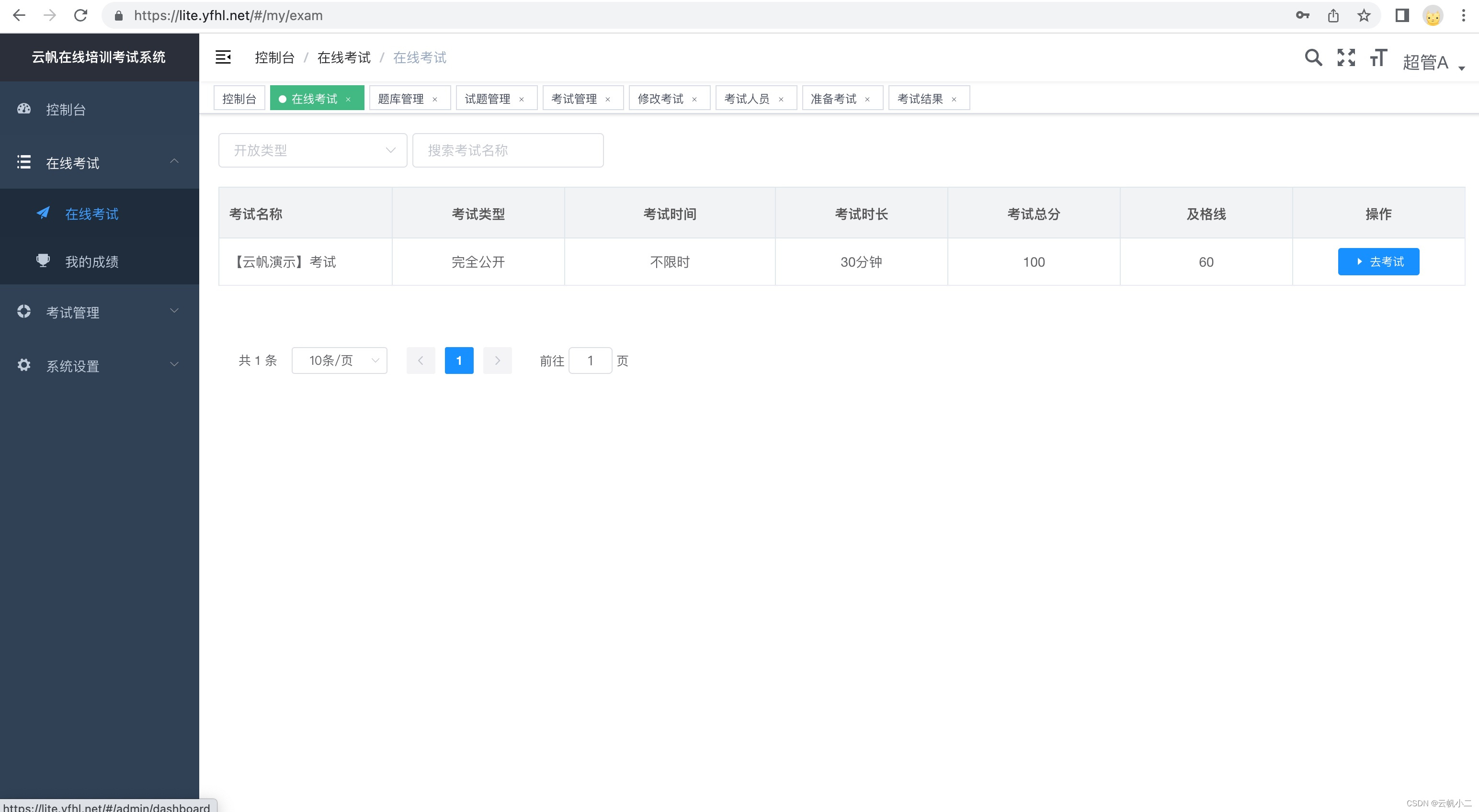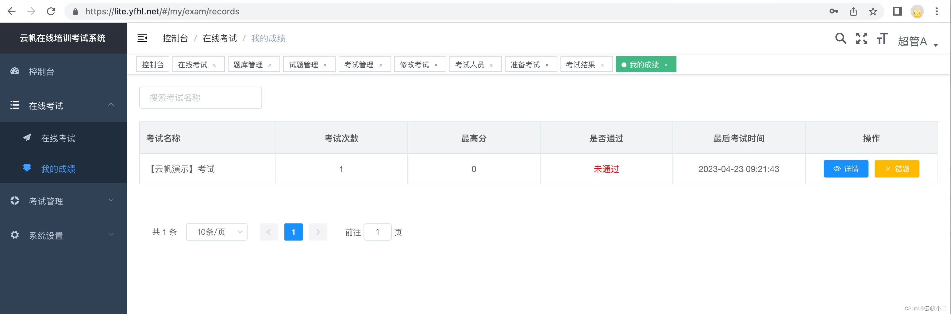 云帆考试系统是一款基于SpringBoot+Vue开发的考试系统。包含在线考试、用户体系、错题训练、考试规则、智能算分等考试功能,流程通畅。