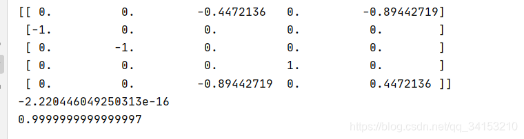 我们用numpy验证一下,下面的矩阵是不是正交矩阵