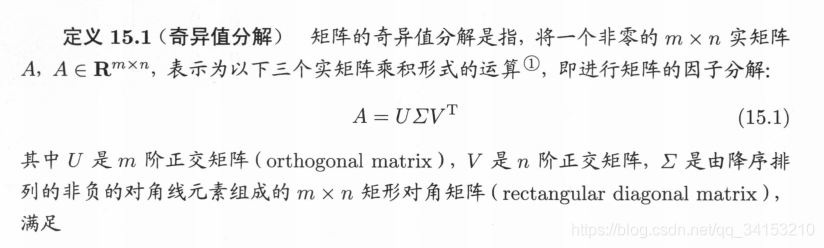 又V和U是正交矩阵,正交矩阵的性质是VT=V-1,所以15.20变成下面的形式
