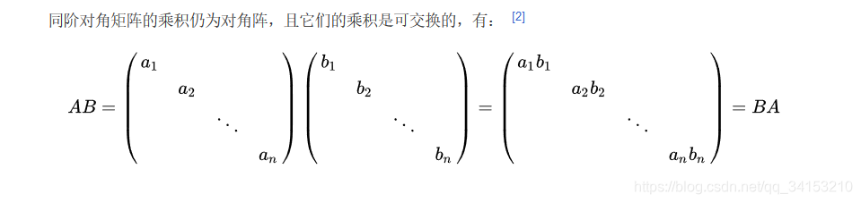 对角矩阵的性值跟可逆矩阵有一点一样,就是可以交换次序,书上没找到,提高百度的截图