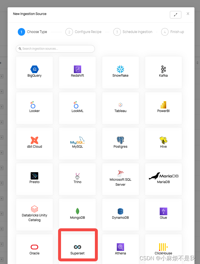 datahub-元数据摄取-python写入(不支持的数据源) 对于官方支持的数据源直接在ingestion设置yml文件即可例行调度任务自动摄取,对于当前不支持的数据源采取python写入dataset信息的方式。由于datahub官方支持摄取的数据源类型有限,对于一些当前不支持的数据源如何摄取元数据,本文将提供对应的写入手段。运行上述脚本,即可创建平台,待向该platform写入dataset的数据后,首页会显示。执行上述脚本后,首页会显示该平台数据集数量,点击可看dataset详情。