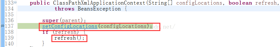 然后进入到org.springframework.context.support中的ClassPathXmlApplicationContext方法: